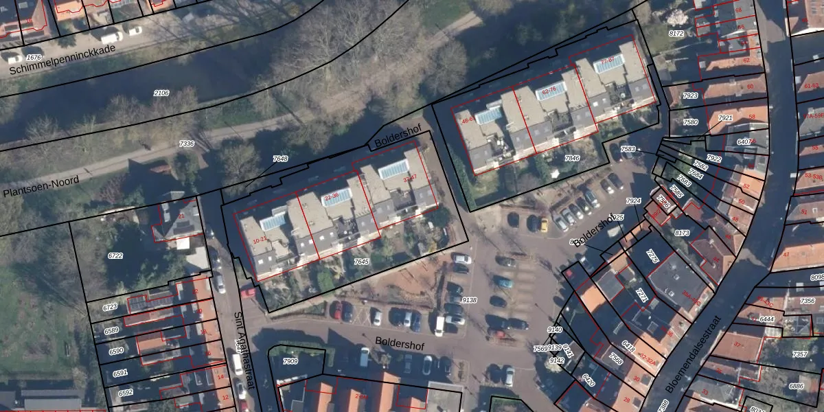 Boldershof 41 is gelegen op kadastraal perceel AMF00E7645. Deze kadastrale aanduiding is uniek en wordt gebruikt door het Kadaster om eigendomsrechten en andere zakelijke rechten vast te leggen. Het perceel maakt onderdeel uit van de kadastrale gemeente Amersfoort.
