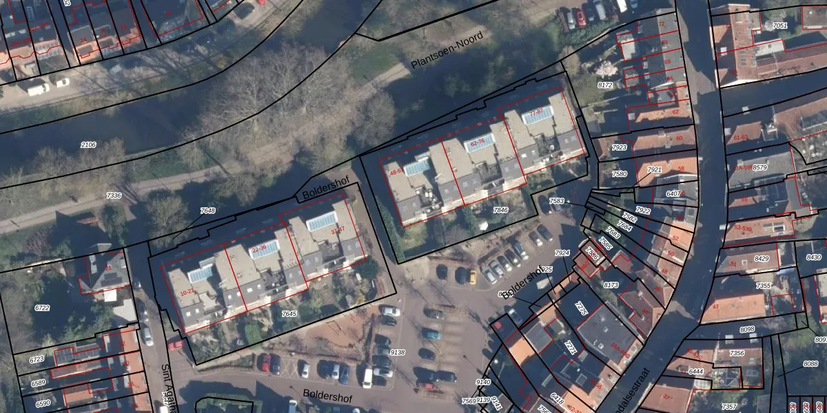 Boldershof 49 is gelegen op kadastraal perceel AMF00E7846. Deze kadastrale aanduiding is uniek en wordt gebruikt door het Kadaster om eigendomsrechten en andere zakelijke rechten vast te leggen. Het perceel maakt onderdeel uit van de kadastrale gemeente Amersfoort.