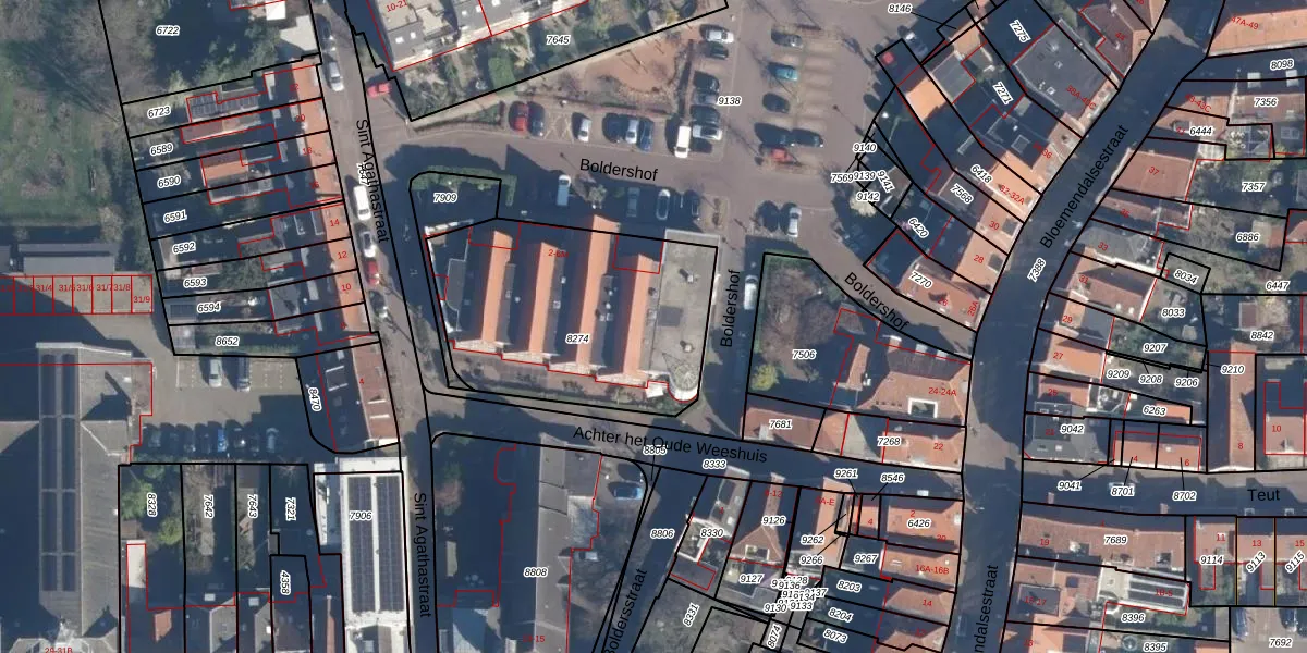 Boldershof 6-A is gelegen op kadastraal perceel AMF00E8274. Deze kadastrale aanduiding is uniek en wordt gebruikt door het Kadaster om eigendomsrechten en andere zakelijke rechten vast te leggen. Het perceel maakt onderdeel uit van de kadastrale gemeente Amersfoort.