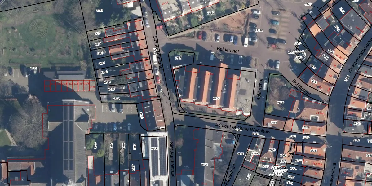 Boldershof 6-G is gelegen op kadastraal perceel AMF00E8274. Deze kadastrale aanduiding is uniek en wordt gebruikt door het Kadaster om eigendomsrechten en andere zakelijke rechten vast te leggen. Het perceel maakt onderdeel uit van de kadastrale gemeente Amersfoort.