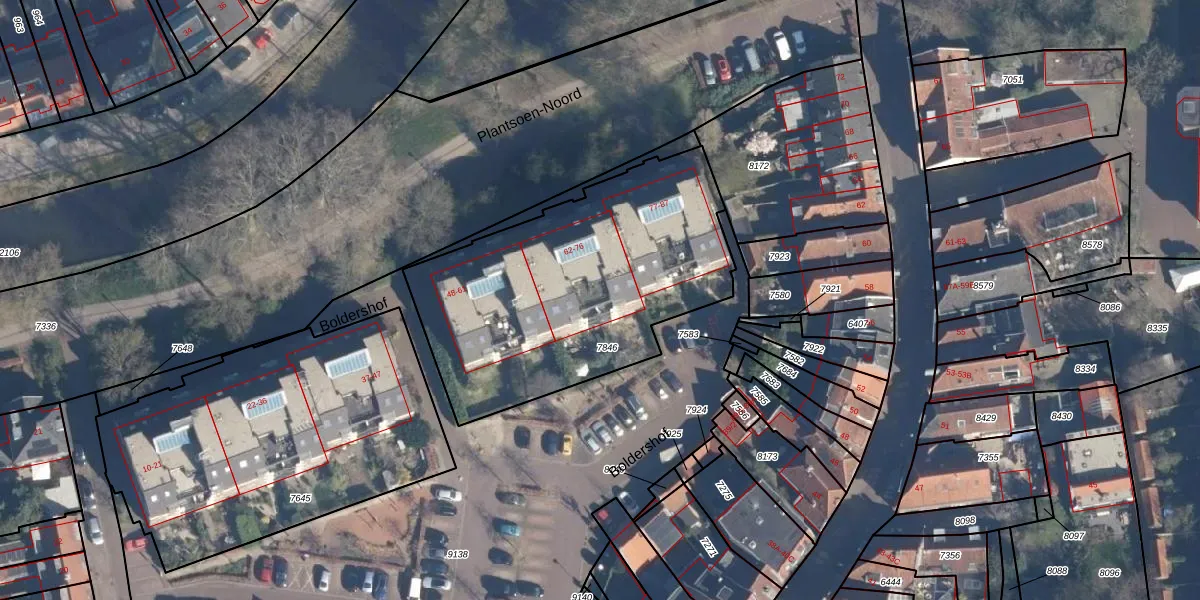 Boldershof 73 is gelegen op kadastraal perceel AMF00E7846. Deze kadastrale aanduiding is uniek en wordt gebruikt door het Kadaster om eigendomsrechten en andere zakelijke rechten vast te leggen. Het perceel maakt onderdeel uit van de kadastrale gemeente Amersfoort.