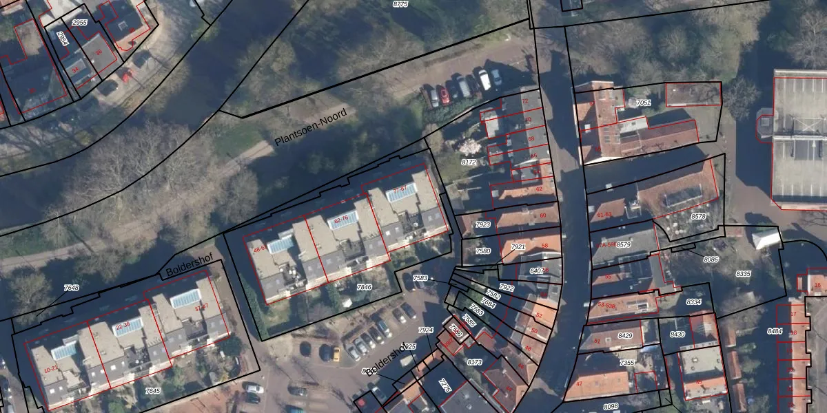 Boldershof 80 is gelegen op kadastraal perceel AMF00E7846. Deze kadastrale aanduiding is uniek en wordt gebruikt door het Kadaster om eigendomsrechten en andere zakelijke rechten vast te leggen. Het perceel maakt onderdeel uit van de kadastrale gemeente Amersfoort.