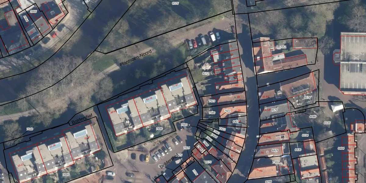 Boldershof 84 is gelegen op kadastraal perceel AMF00E7846. Deze kadastrale aanduiding is uniek en wordt gebruikt door het Kadaster om eigendomsrechten en andere zakelijke rechten vast te leggen. Het perceel maakt onderdeel uit van de kadastrale gemeente Amersfoort.