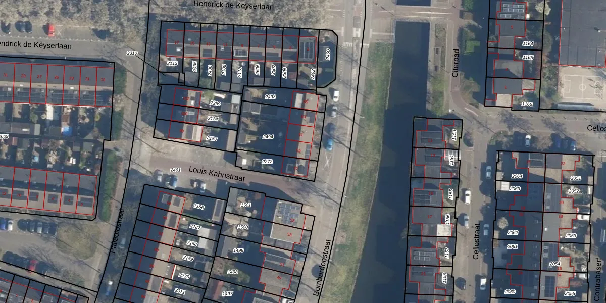 Het perceel waarop Bombardonstraat 59 staat heeft een oppervlakte van 447 m². Dit is een groot perceel. De perceeloppervlakte wordt geregistreerd door het Kadaster. Gedetailleerde informatie over de maten van dit perceel kunt u vinden in het rapport Kadastrale kaart met maatvoering van Bombardonstraat 59.