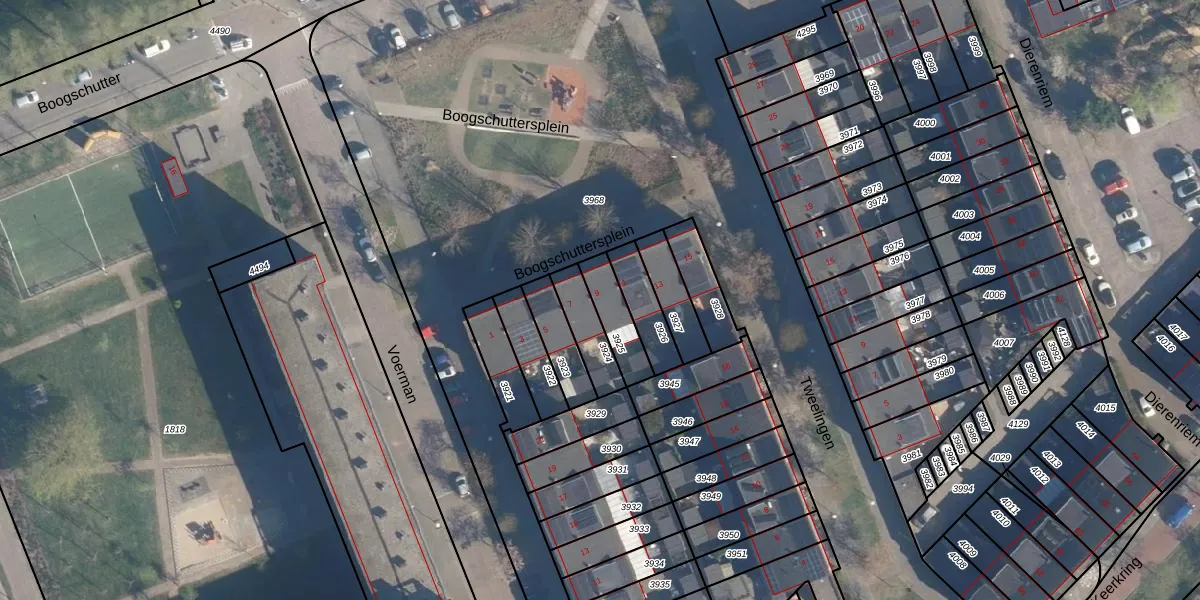 Gebruik de zoekbalk of klik op een perceel voor informatie over de adressen binnen dit perceel.