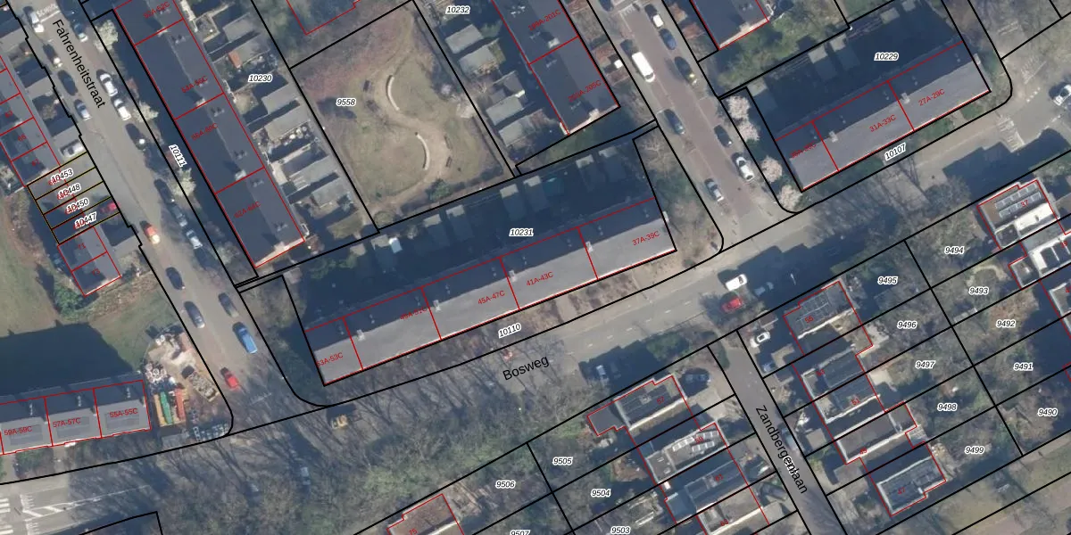 Bosweg 43-C is gelegen op kadastraal perceel AMF00B10231. Deze kadastrale aanduiding is uniek en wordt gebruikt door het Kadaster om eigendomsrechten en andere zakelijke rechten vast te leggen. Het perceel maakt onderdeel uit van de kadastrale gemeente Amersfoort.