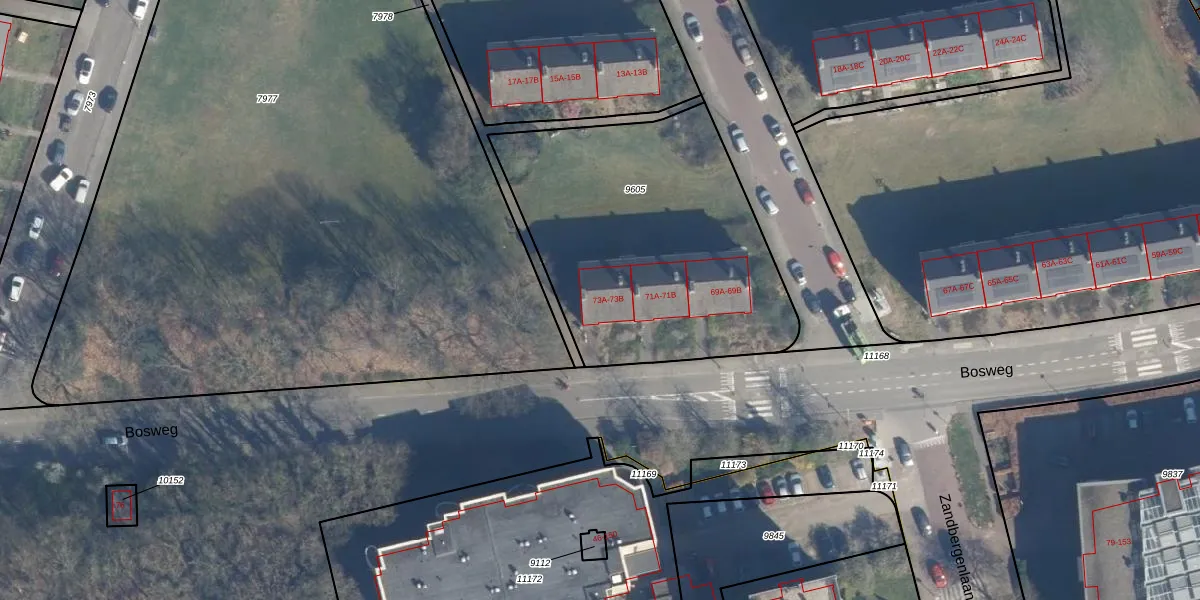 Bosweg 73-B is gelegen op kadastraal perceel AMF00B9605. Deze kadastrale aanduiding is uniek en wordt gebruikt door het Kadaster om eigendomsrechten en andere zakelijke rechten vast te leggen. Het perceel maakt onderdeel uit van de kadastrale gemeente Amersfoort.