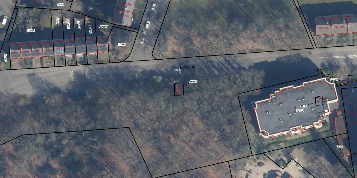 Het perceel waarop Bosweg 76 staat heeft een oppervlakte van 34 m². Dit is een klein perceel. De perceeloppervlakte wordt geregistreerd door het Kadaster. Gedetailleerde informatie over de maten van dit perceel kunt u vinden in het rapport Kadastrale kaart met maatvoering van Bosweg 76.