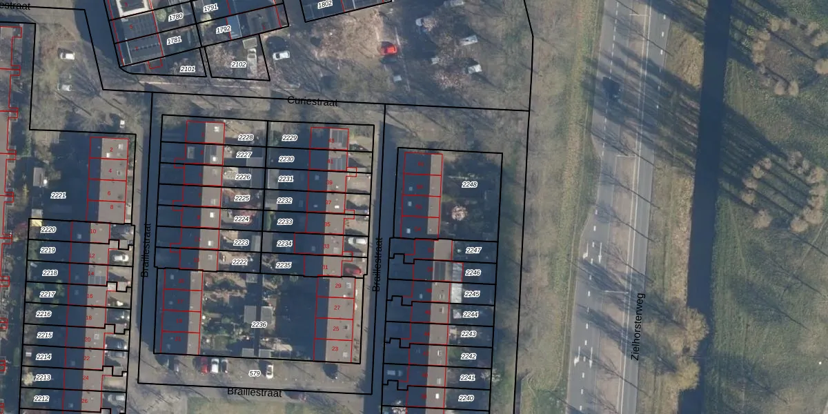Het perceel waarop Braillestraat 56 staat heeft een oppervlakte van 547 m². Dit is een groot perceel. De perceeloppervlakte wordt geregistreerd door het Kadaster. Gedetailleerde informatie over de maten van dit perceel kunt u vinden in het rapport Kadastrale kaart met maatvoering van Braillestraat 56.