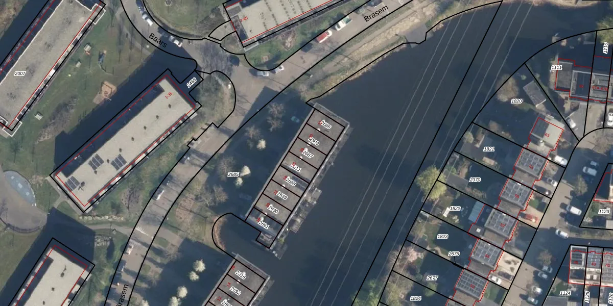 Gebruik de zoekbalk of klik op een perceel voor informatie over de adressen binnen dit perceel.
