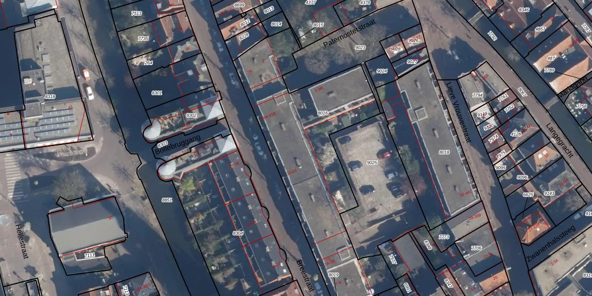 Het perceel waarop Breestraat 21-C staat heeft een oppervlakte van 2100 m². Dit is een zeer groot perceel. De perceeloppervlakte wordt geregistreerd door het Kadaster. Gedetailleerde informatie over de maten van dit perceel kunt u vinden in het rapport Kadastrale kaart met maatvoering van Breestraat 21-C.
