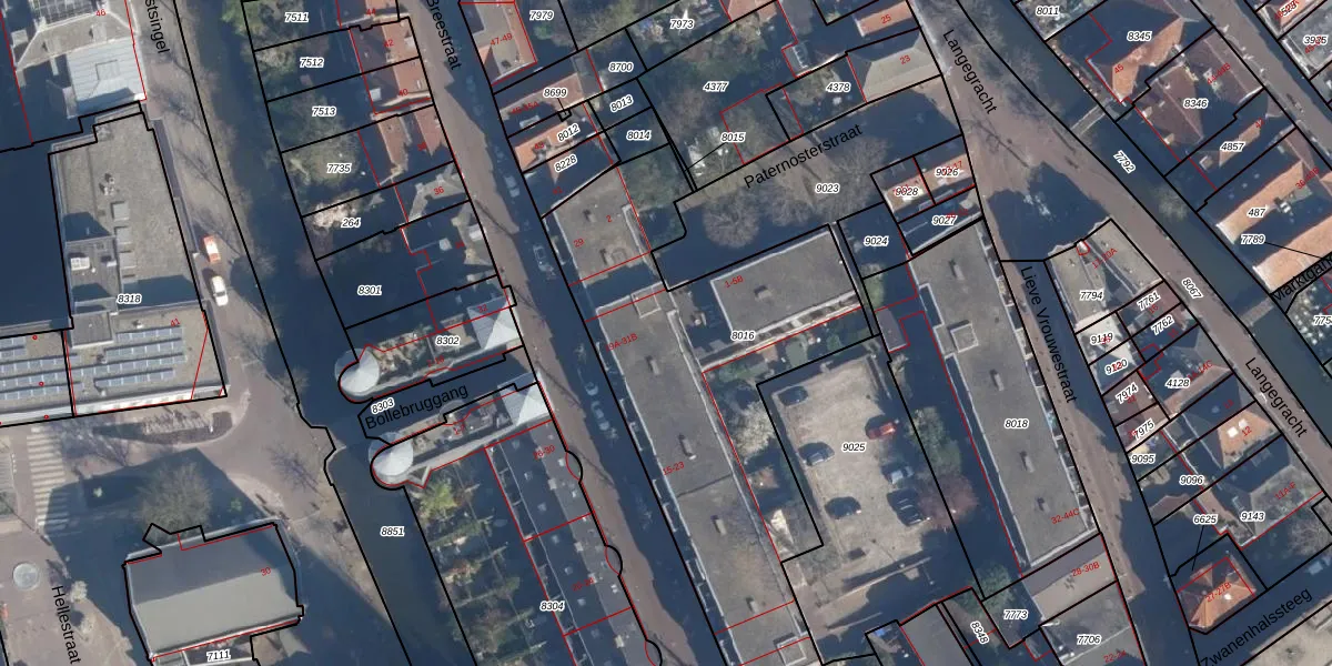 Het perceel waarop Breestraat 25-C staat heeft een oppervlakte van 2100 m². Dit is een zeer groot perceel. De perceeloppervlakte wordt geregistreerd door het Kadaster. Gedetailleerde informatie over de maten van dit perceel kunt u vinden in het rapport Kadastrale kaart met maatvoering van Breestraat 25-C.