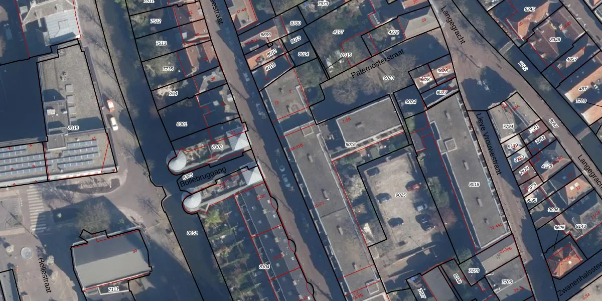Het perceel waarop Breestraat 25-A staat heeft een oppervlakte van 2100 m². Dit is een zeer groot perceel. De perceeloppervlakte wordt geregistreerd door het Kadaster. Gedetailleerde informatie over de maten van dit perceel kunt u vinden in het rapport Kadastrale kaart met maatvoering van Breestraat 25-A.