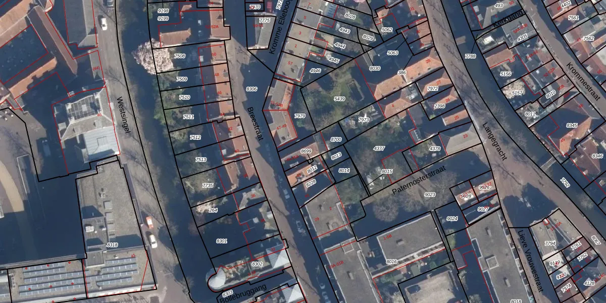 Het perceel waarop Breestraat 45-A staat heeft een oppervlakte van 163 m². Dit is een middelgroot perceel. De perceeloppervlakte wordt geregistreerd door het Kadaster. Gedetailleerde informatie over de maten van dit perceel kunt u vinden in het rapport Kadastrale kaart met maatvoering van Breestraat 45-A.