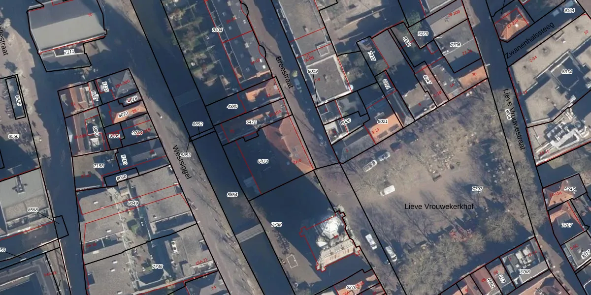 Het perceel waarop Breestraat 6 staat heeft een oppervlakte van 517 m². Dit is een groot perceel. De perceeloppervlakte wordt geregistreerd door het Kadaster. Gedetailleerde informatie over de maten van dit perceel kunt u vinden in het rapport Kadastrale kaart met maatvoering van Breestraat 6.