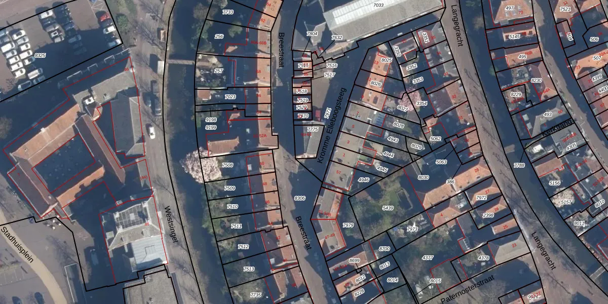 Het perceel waarop Breestraat 61 staat heeft een oppervlakte van 93 m². Dit is een klein perceel. De perceeloppervlakte wordt geregistreerd door het Kadaster. Gedetailleerde informatie over de maten van dit perceel kunt u vinden in het rapport Kadastrale kaart met maatvoering van Breestraat 61.