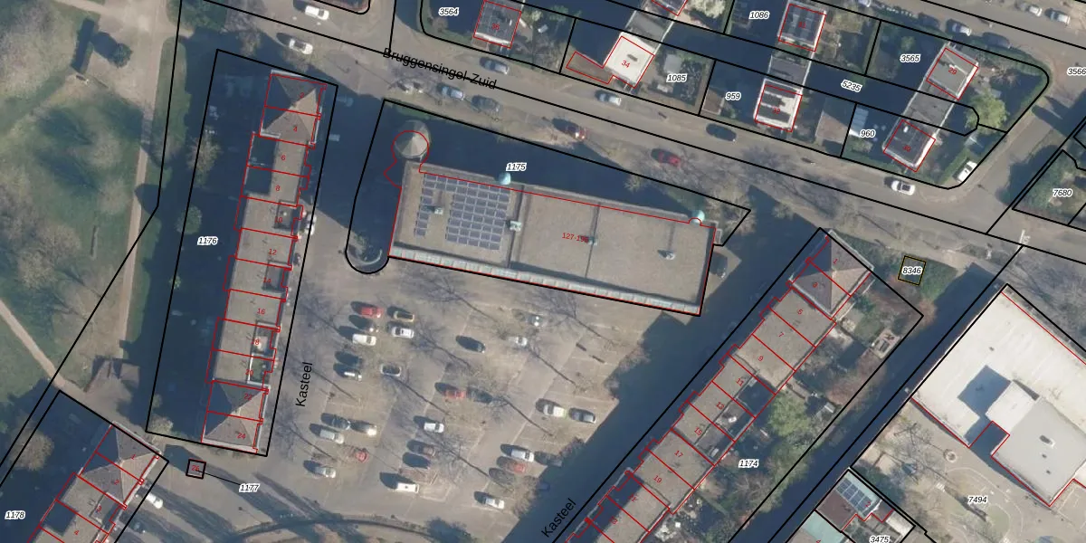 Bruggensingel-Zuid 185 is gelegen op kadastraal perceel AMF00O1175. Deze kadastrale aanduiding is uniek en wordt gebruikt door het Kadaster om eigendomsrechten en andere zakelijke rechten vast te leggen. Het perceel maakt onderdeel uit van de kadastrale gemeente Amersfoort.