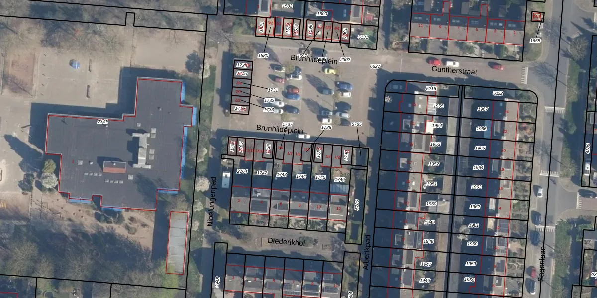 Het perceel waarop Brunhildeplein 1-6 staat heeft een oppervlakte van 172 m². Dit is een middelgroot perceel. De perceeloppervlakte wordt geregistreerd door het Kadaster. Gedetailleerde informatie over de maten van dit perceel kunt u vinden in het rapport Kadastrale kaart met maatvoering van Brunhildeplein 1-6.