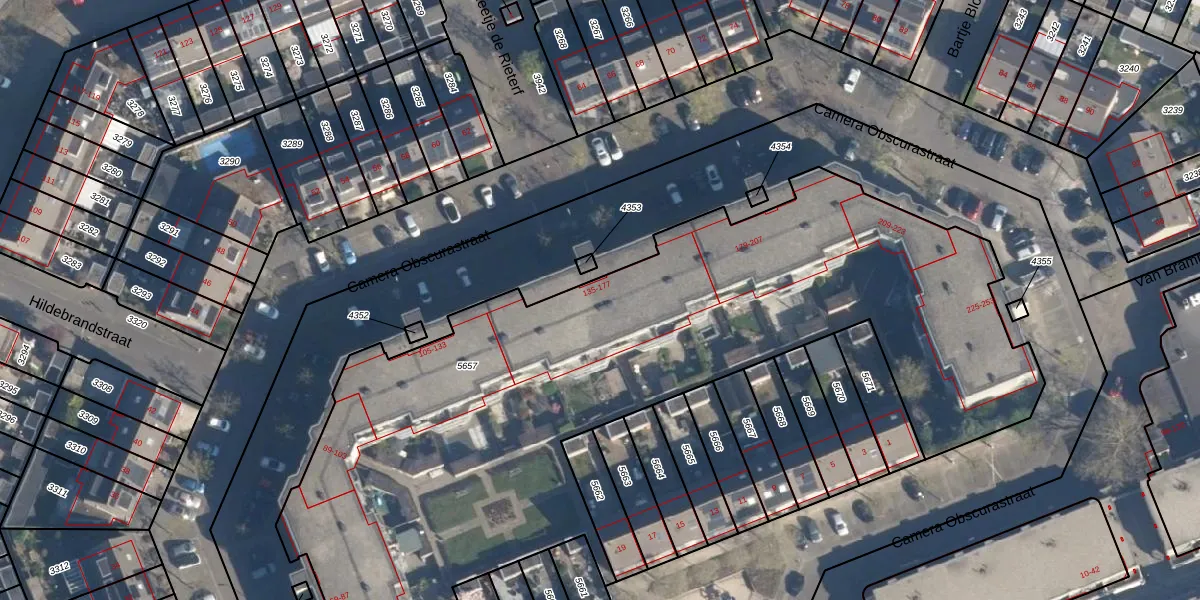 Camera Obscurastraat 153 is gelegen op kadastraal perceel AMF00K5657. Deze kadastrale aanduiding is uniek en wordt gebruikt door het Kadaster om eigendomsrechten en andere zakelijke rechten vast te leggen. Het perceel maakt onderdeel uit van de kadastrale gemeente Amersfoort.