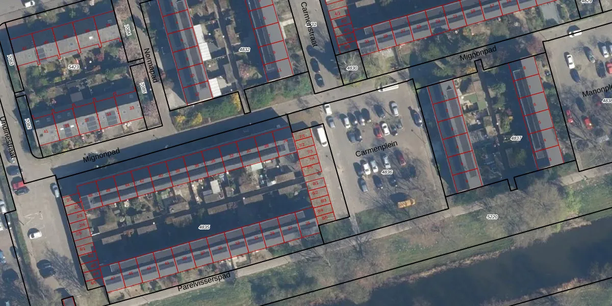 Het perceel waarop Carmenplein 7-3 staat heeft een oppervlakte van 3711 m². Dit is een zeer groot perceel. De perceeloppervlakte wordt geregistreerd door het Kadaster. Gedetailleerde informatie over de maten van dit perceel kunt u vinden in het rapport Kadastrale kaart met maatvoering van Carmenplein 7-3.