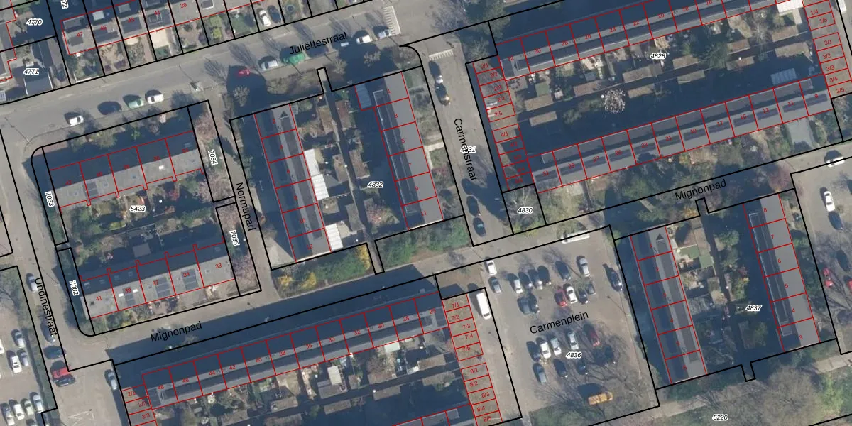 Het perceel waarop Carmenstraat 11 staat heeft een oppervlakte van 1740 m². Dit is een zeer groot perceel. De perceeloppervlakte wordt geregistreerd door het Kadaster. Gedetailleerde informatie over de maten van dit perceel kunt u vinden in het rapport Kadastrale kaart met maatvoering van Carmenstraat 11.