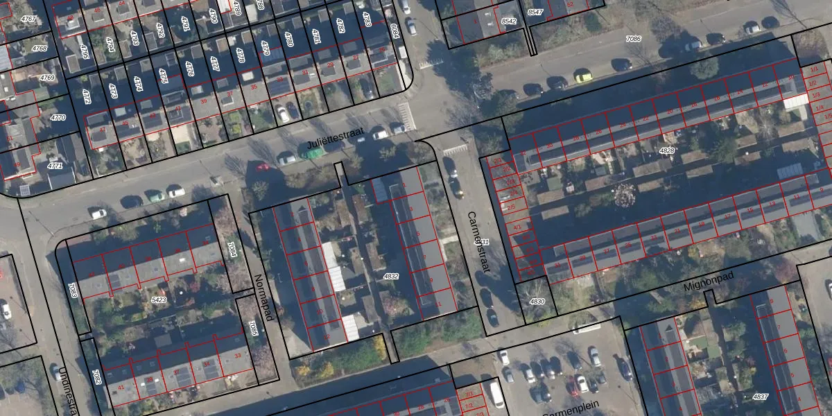 Het perceel waarop Carmenstraat 3 staat heeft een oppervlakte van 1740 m². Dit is een zeer groot perceel. De perceeloppervlakte wordt geregistreerd door het Kadaster. Gedetailleerde informatie over de maten van dit perceel kunt u vinden in het rapport Kadastrale kaart met maatvoering van Carmenstraat 3.