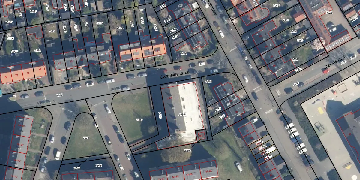 Het perceel waarop Cartesiusstraat 2 staat heeft een oppervlakte van 871 m². Dit is een groot perceel. De perceeloppervlakte wordt geregistreerd door het Kadaster. Gedetailleerde informatie over de maten van dit perceel kunt u vinden in het rapport Kadastrale kaart met maatvoering van Cartesiusstraat 2.