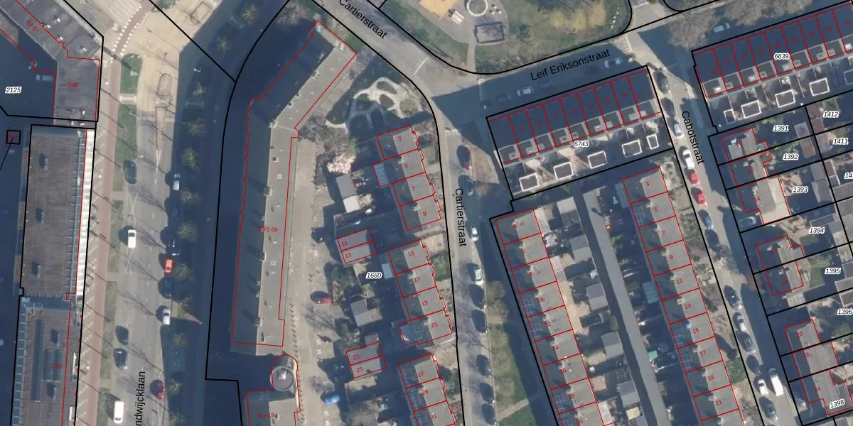 Het perceel waarop Cartierstraat 9 staat heeft een oppervlakte van 6940 m². Dit is een zeer groot perceel. De perceeloppervlakte wordt geregistreerd door het Kadaster. Gedetailleerde informatie over de maten van dit perceel kunt u vinden in het rapport Kadastrale kaart met maatvoering van Cartierstraat 9.