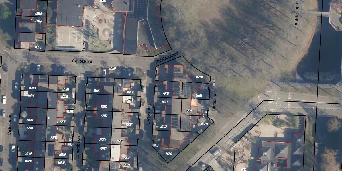 Het perceel waarop Cellostraat 7 staat heeft een oppervlakte van 155 m². Dit is een middelgroot perceel. De perceeloppervlakte wordt geregistreerd door het Kadaster. Gedetailleerde informatie over de maten van dit perceel kunt u vinden in het rapport Kadastrale kaart met maatvoering van Cellostraat 7.