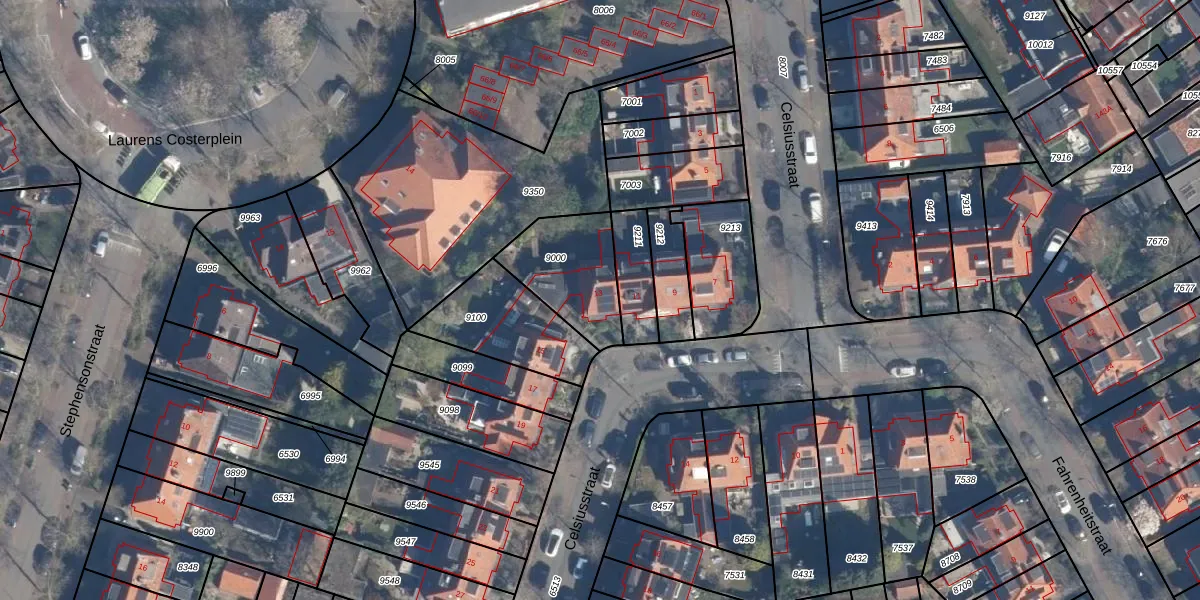 Het perceel waarop Celsiusstraat 13 staat heeft een oppervlakte van 302 m². Dit is een groot perceel. De perceeloppervlakte wordt geregistreerd door het Kadaster. Gedetailleerde informatie over de maten van dit perceel kunt u vinden in het rapport Kadastrale kaart met maatvoering van Celsiusstraat 13.