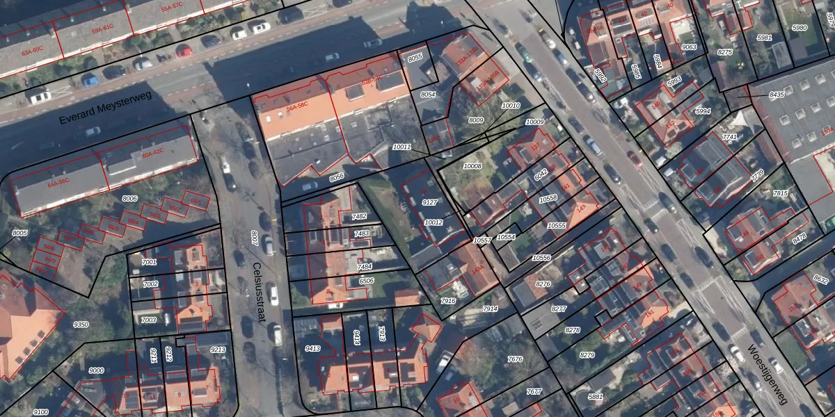 Gebruik de zoekbalk of klik op een perceel voor informatie over de adressen binnen dit perceel.