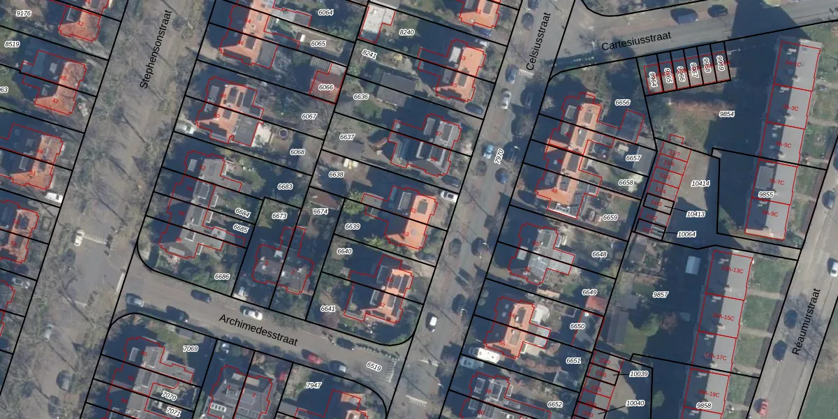 Het perceel waarop Celsiusstraat 61 staat heeft een oppervlakte van 325 m². Dit is een groot perceel. De perceeloppervlakte wordt geregistreerd door het Kadaster. Gedetailleerde informatie over de maten van dit perceel kunt u vinden in het rapport Kadastrale kaart met maatvoering van Celsiusstraat 61.