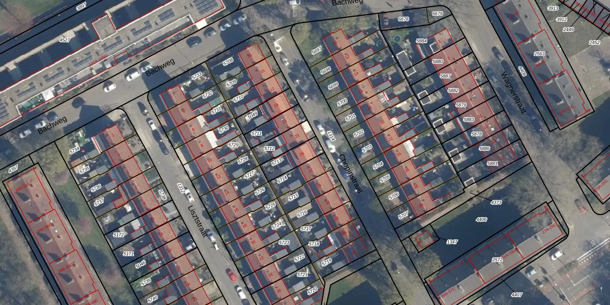 Het perceel waarop Chopinstraat 25 staat heeft een oppervlakte van 125 m². Dit is een middelgroot perceel. De perceeloppervlakte wordt geregistreerd door het Kadaster. Gedetailleerde informatie over de maten van dit perceel kunt u vinden in het rapport Kadastrale kaart met maatvoering van Chopinstraat 25.