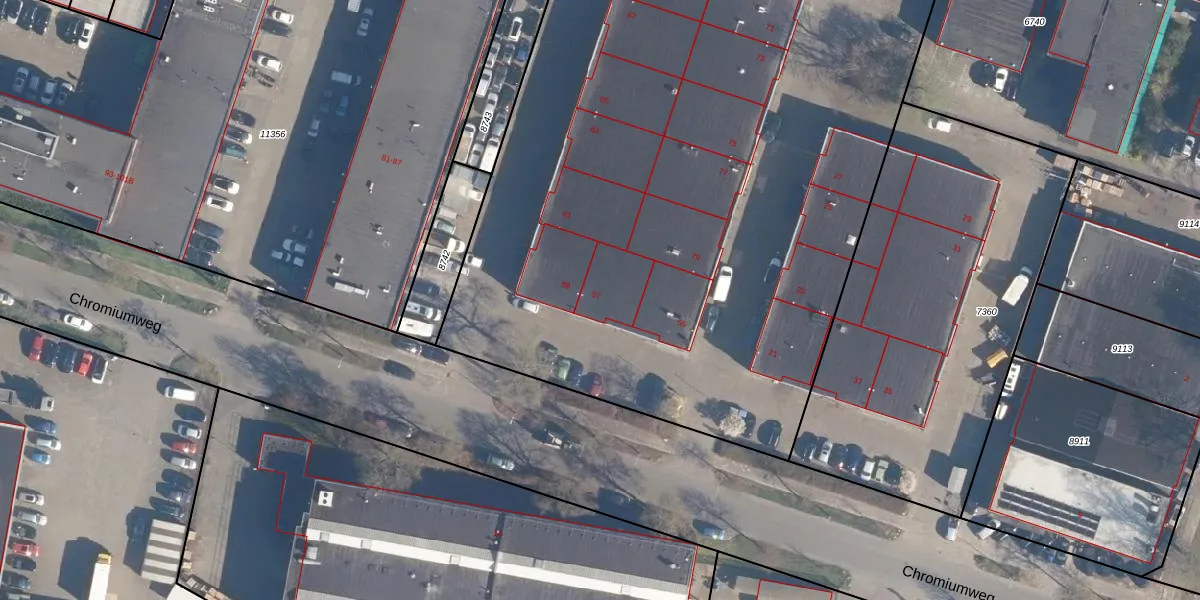 Het perceel waarop Chromiumweg 57 staat heeft een oppervlakte van 7686 m². Dit is een zeer groot perceel. De perceeloppervlakte wordt geregistreerd door het Kadaster. Gedetailleerde informatie over de maten van dit perceel kunt u vinden in het rapport Kadastrale kaart met maatvoering van Chromiumweg 57.
