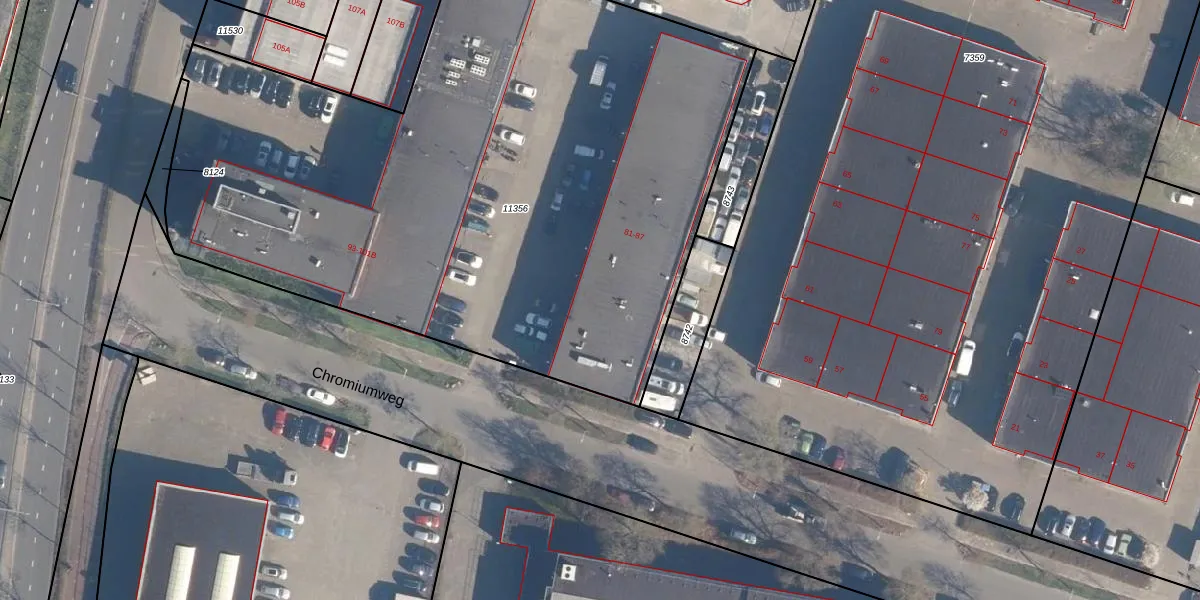 Het perceel waarop Chromiumweg 83 staat heeft een oppervlakte van 4435 m². Dit is een zeer groot perceel. De perceeloppervlakte wordt geregistreerd door het Kadaster. Gedetailleerde informatie over de maten van dit perceel kunt u vinden in het rapport Kadastrale kaart met maatvoering van Chromiumweg 83.