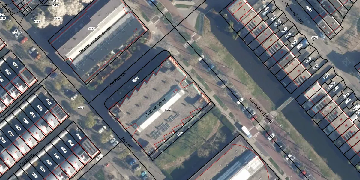 Het perceel waarop Clusius-serre 16 staat heeft een oppervlakte van 1564 m². Dit is een zeer groot perceel. De perceeloppervlakte wordt geregistreerd door het Kadaster. Gedetailleerde informatie over de maten van dit perceel kunt u vinden in het rapport Kadastrale kaart met maatvoering van Clusius-serre 16.