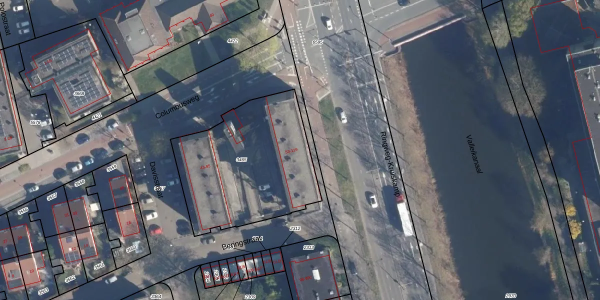 Columbusweg 55 is gelegen op kadastraal perceel AMF00G3465. Deze kadastrale aanduiding is uniek en wordt gebruikt door het Kadaster om eigendomsrechten en andere zakelijke rechten vast te leggen. Het perceel maakt onderdeel uit van de kadastrale gemeente Amersfoort.