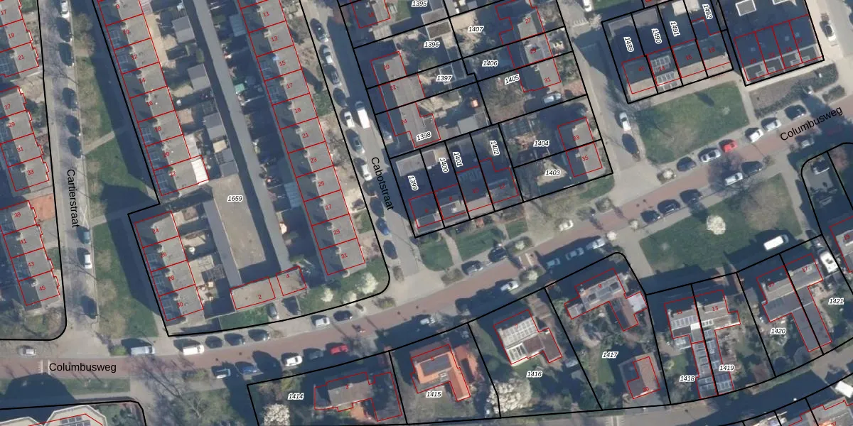 Columbusweg 6 is gelegen op kadastraal perceel AMF00G1399. Deze kadastrale aanduiding is uniek en wordt gebruikt door het Kadaster om eigendomsrechten en andere zakelijke rechten vast te leggen. Het perceel maakt onderdeel uit van de kadastrale gemeente Amersfoort.