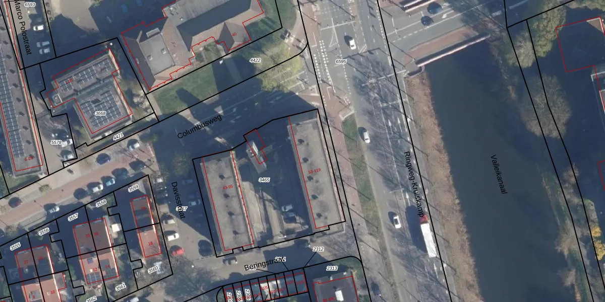 Columbusweg 97 is gelegen op kadastraal perceel AMF00G3465. Deze kadastrale aanduiding is uniek en wordt gebruikt door het Kadaster om eigendomsrechten en andere zakelijke rechten vast te leggen. Het perceel maakt onderdeel uit van de kadastrale gemeente Amersfoort.