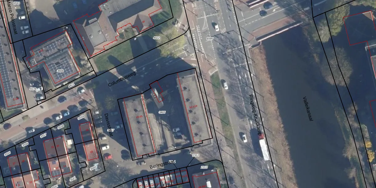 Columbusweg 99 is gelegen op kadastraal perceel AMF00G3465. Deze kadastrale aanduiding is uniek en wordt gebruikt door het Kadaster om eigendomsrechten en andere zakelijke rechten vast te leggen. Het perceel maakt onderdeel uit van de kadastrale gemeente Amersfoort.