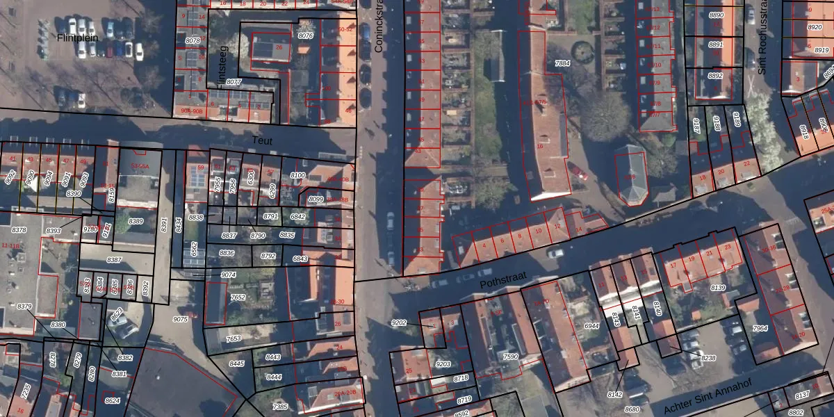Het perceel waarop Coninckstraat 37 staat heeft een oppervlakte van 5892 m². Dit is een zeer groot perceel. De perceeloppervlakte wordt geregistreerd door het Kadaster. Gedetailleerde informatie over de maten van dit perceel kunt u vinden in het rapport Kadastrale kaart met maatvoering van Coninckstraat 37.
