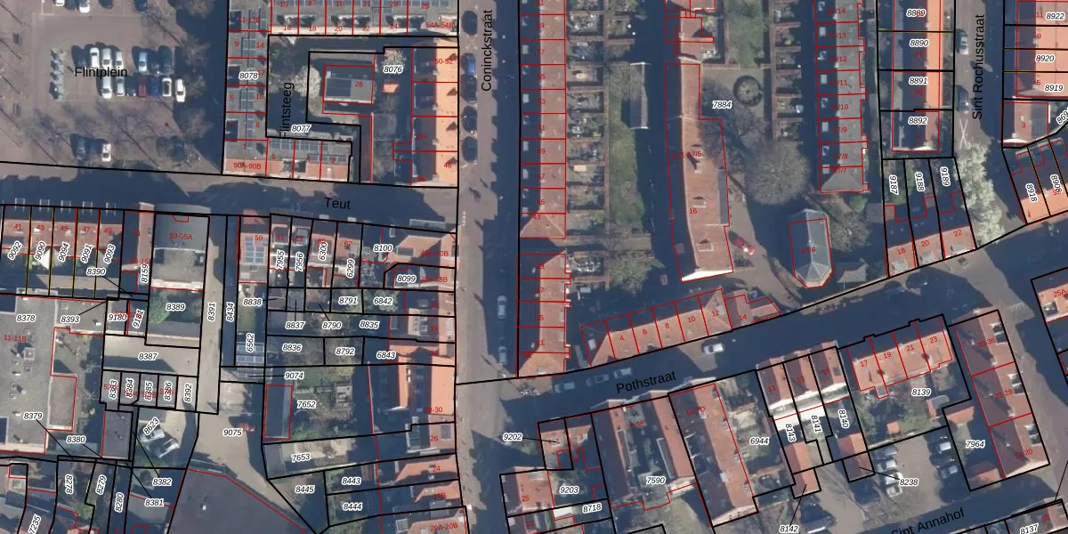 Het perceel waarop Coninckstraat 39 staat heeft een oppervlakte van 5892 m². Dit is een zeer groot perceel. De perceeloppervlakte wordt geregistreerd door het Kadaster. Gedetailleerde informatie over de maten van dit perceel kunt u vinden in het rapport Kadastrale kaart met maatvoering van Coninckstraat 39.
