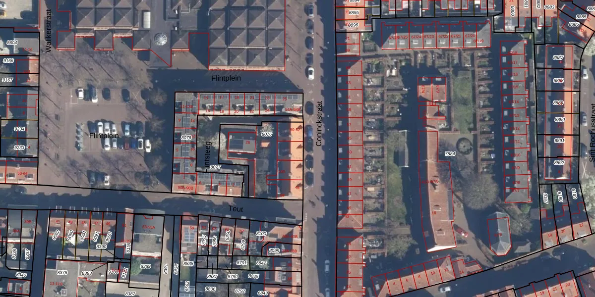Coninckstraat 50 is gelegen op kadastraal perceel AMF00E8076. Deze kadastrale aanduiding is uniek en wordt gebruikt door het Kadaster om eigendomsrechten en andere zakelijke rechten vast te leggen. Het perceel maakt onderdeel uit van de kadastrale gemeente Amersfoort.