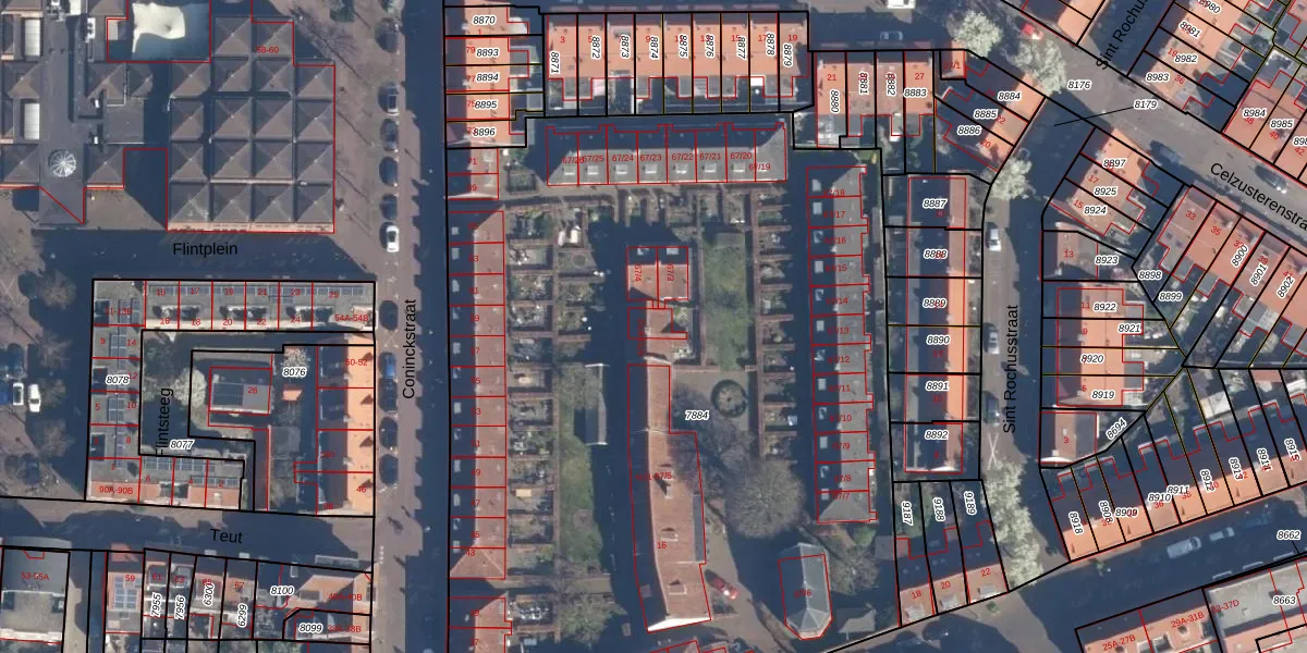Het perceel waarop Coninckstraat 67-1 staat heeft een oppervlakte van 5892 m². Dit is een zeer groot perceel. De perceeloppervlakte wordt geregistreerd door het Kadaster. Gedetailleerde informatie over de maten van dit perceel kunt u vinden in het rapport Kadastrale kaart met maatvoering van Coninckstraat 67-1.