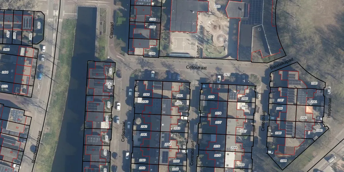 Gebruik de zoekbalk of klik op een perceel voor informatie over de adressen binnen dit perceel.