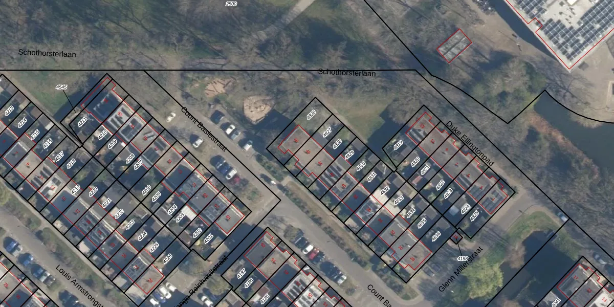 Gebruik de zoekbalk of klik op een perceel voor informatie over de adressen binnen dit perceel.