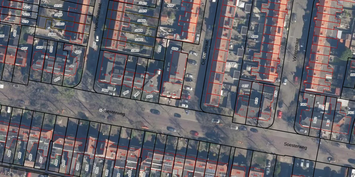 Het perceel waarop Crocusstraat 4 staat heeft een oppervlakte van 382 m². Dit is een groot perceel. De perceeloppervlakte wordt geregistreerd door het Kadaster. Gedetailleerde informatie over de maten van dit perceel kunt u vinden in het rapport Kadastrale kaart met maatvoering van Crocusstraat 4.