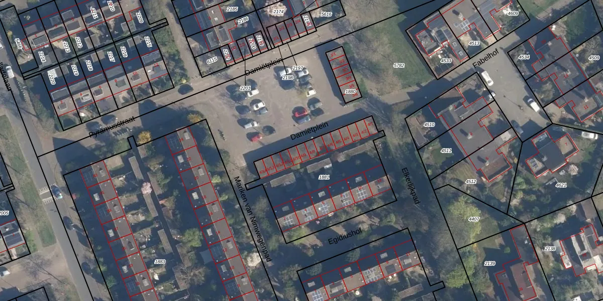 Het perceel waarop Damiëtplein 4-9 staat heeft een oppervlakte van 1194 m². Dit is een zeer groot perceel. De perceeloppervlakte wordt geregistreerd door het Kadaster. Gedetailleerde informatie over de maten van dit perceel kunt u vinden in het rapport Kadastrale kaart met maatvoering van Damiëtplein 4-9.