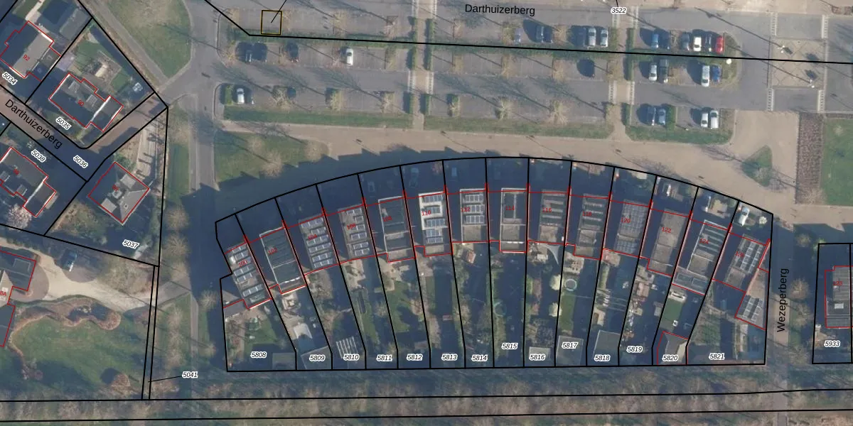 Het perceel waarop Darthuizerberg 110 staat heeft een oppervlakte van 431 m². Dit is een groot perceel. De perceeloppervlakte wordt geregistreerd door het Kadaster. Gedetailleerde informatie over de maten van dit perceel kunt u vinden in het rapport Kadastrale kaart met maatvoering van Darthuizerberg 110.