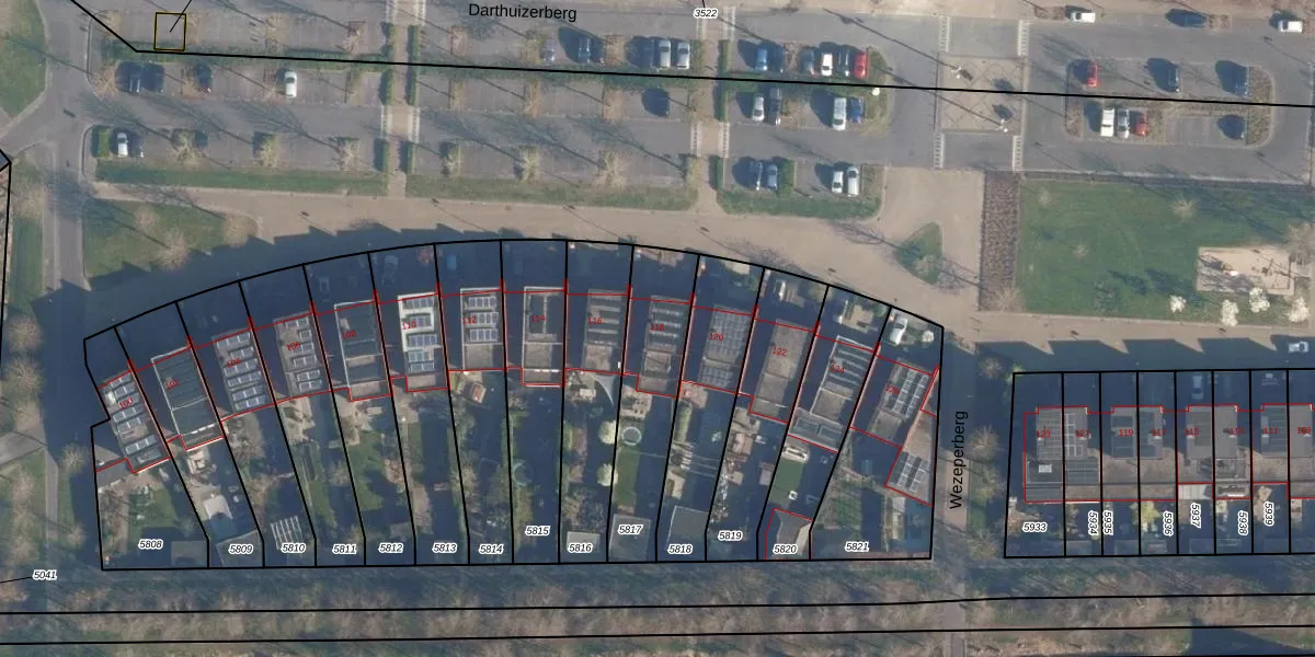 Het perceel waarop Darthuizerberg 118 staat heeft een oppervlakte van 414 m². Dit is een groot perceel. De perceeloppervlakte wordt geregistreerd door het Kadaster. Gedetailleerde informatie over de maten van dit perceel kunt u vinden in het rapport Kadastrale kaart met maatvoering van Darthuizerberg 118.